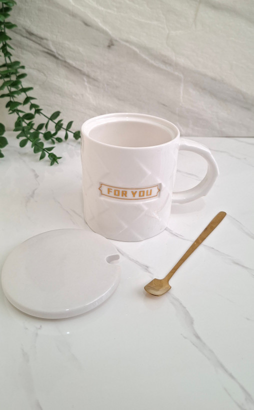 ماگ سفید در دار همراه با قاشق استیل انتخابی شیک و ساده برای استفاده روزانه،به همراه جعبه که مناسب برای هدیه دادن نیز میباشد۰