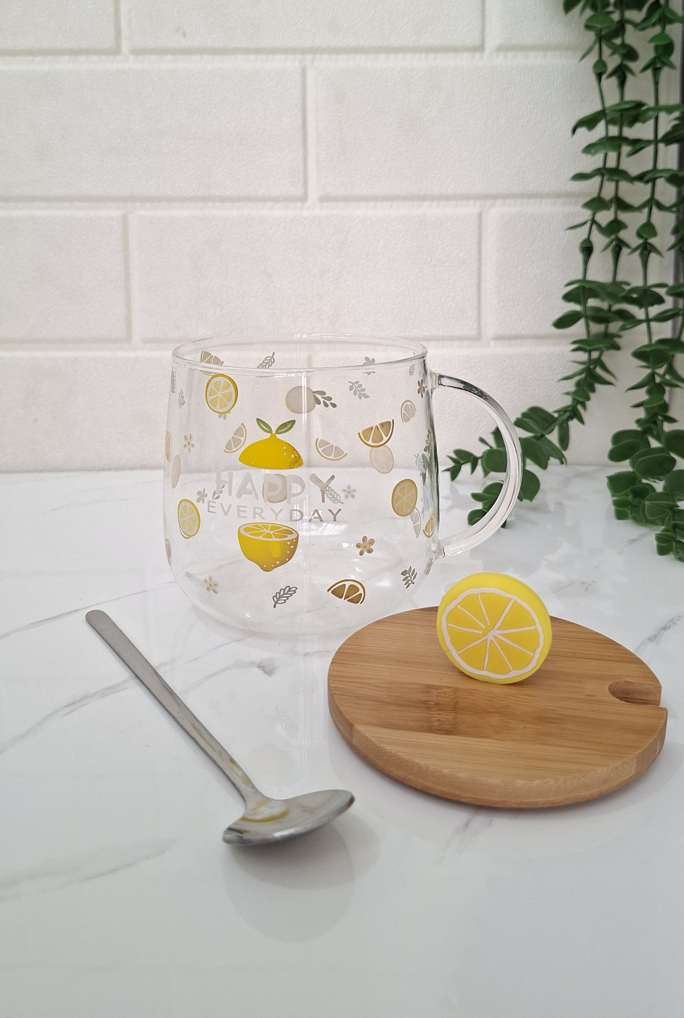 ماگ پیرکس قاشق دار در بامبو طرح لیمو